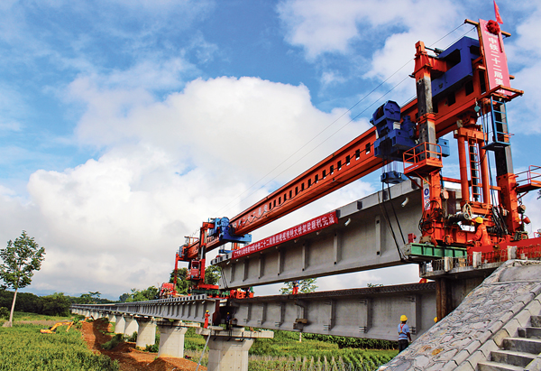 8月6日上午,隨著中鐵二十二局集團(tuán)架橋機(jī)將一片長32米,重134噸的T梁,穩(wěn)穩(wěn)落定在位于云南省景洪市內(nèi)的橄欖壩特大橋上,標(biāo)志著中老昆(明)萬(象)鐵路國內(nèi)段第一長橋順利架通,為全線建成通車奠定了堅實基礎(chǔ)。