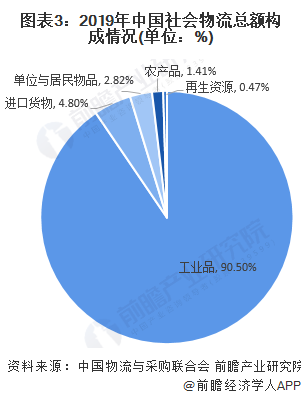 目前我國五大類社會物流物品中工業(yè)品物流需求相對較高。根據(jù)中國物流與采購聯(lián)合會數(shù)據(jù),2019年我國工業(yè)品物流總額269.6萬億元,在全國社會物流總額中占比90.5%,占據(jù)絕對主導(dǎo)地位。由此可見,工業(yè)物流為我國當(dāng)前物流行業(yè)發(fā)展的中堅力量。
