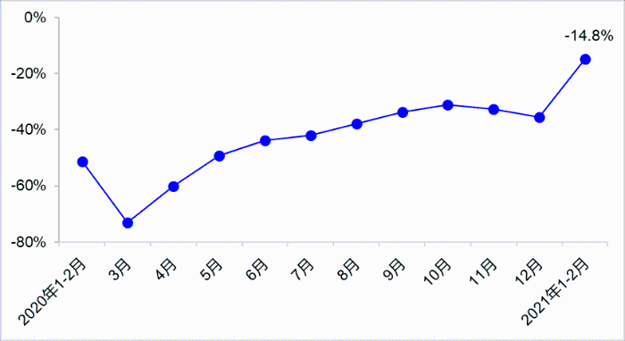 1—2月,受去年低基數(shù)、就地過(guò)年等因素疊加影響,投資、貨運(yùn)量、港口貨物吞吐量等指標(biāo)比2020年同期均實(shí)現(xiàn)大幅增長(zhǎng),營(yíng)業(yè)性客運(yùn)量有所下降。與2019年同期相比,投資、貨運(yùn)量、港口貨物吞吐量等生產(chǎn)相關(guān)指標(biāo)實(shí)現(xiàn)兩位數(shù)增長(zhǎng),營(yíng)業(yè)性客運(yùn)量、城市公共交通客運(yùn)量等生活相關(guān)指標(biāo)降幅明顯。