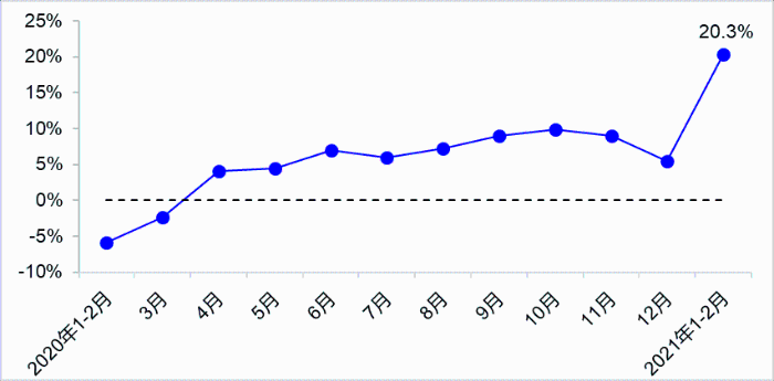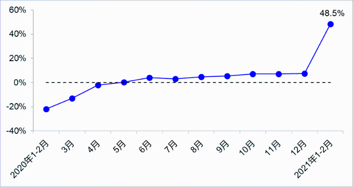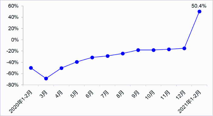 1—2月,完成貨運(yùn)量67.7億噸,比2020年同期、2019年同期分別增長(zhǎng)48.5%和16.0%,其中公路貨運(yùn)量比2020年同期增長(zhǎng)63.8%,水路貨運(yùn)量比2020年同期增長(zhǎng)25.4%。